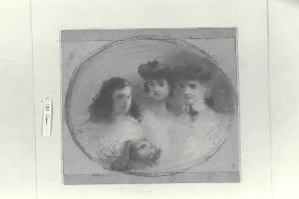 Ritratto in un tondo di tre ragazze con un cane. Ritratto in un tondo di tre ragazze con un cane