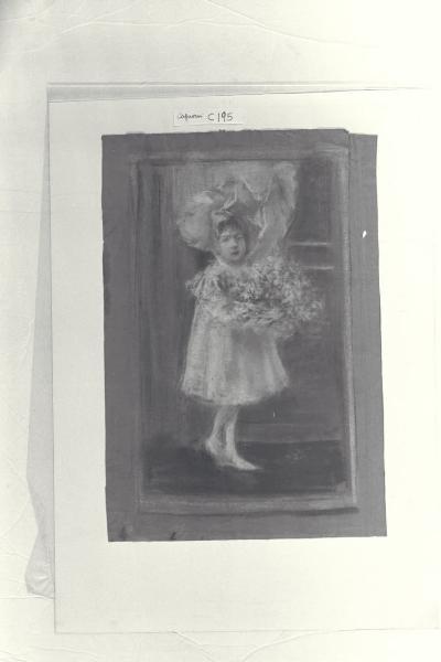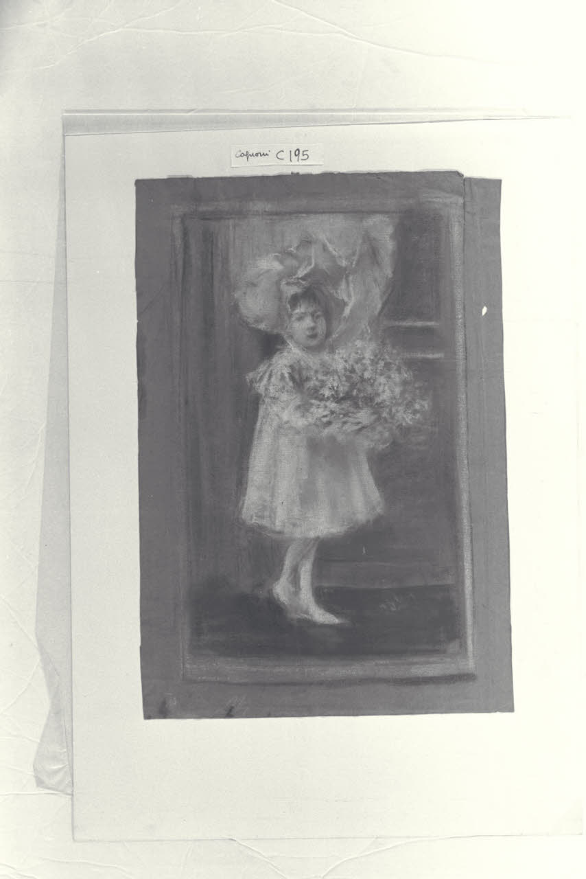 Ritratto di bambina con mazzo di fiori in un interno. Ritratto di bambina con mazzo di fiori in un interno