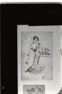 inchiostro nero a penna su carta bianca, incollata su cartone avorio
