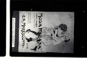 ritaglio di giornale a colori incollato su cartoncino marrone