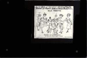 ritaglio di giornale in bianco-nero incollato su cartone marrone