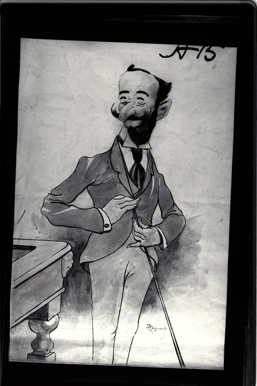 Ritratto caricaturale di un uomo in esterno. Ritratto caricaturale di un uomo in esterno