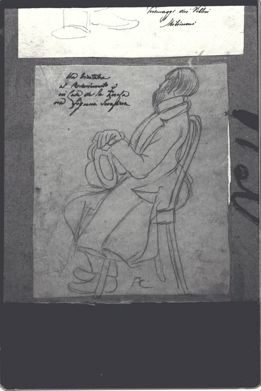 matita su carta velina, incollata su carta bianca, incollata su cartoncino grigio