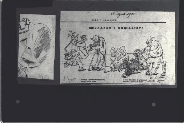Testa maschile di profilo e schizzi. Testa maschile di profilo e schizzi