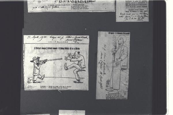 ritaglio di giornale ("Il Guerin Meschino"), incollato su cartone marrone