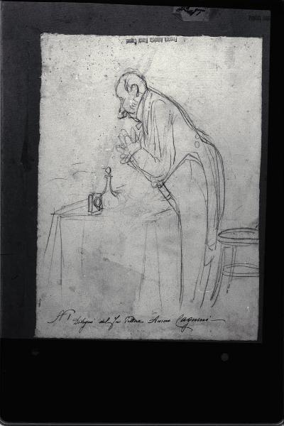- NOTIZIE STORICO CRITICHE Si tratta probabilmente di un primo disegno preparatorio per "Conferenze e conferenzieri" di Pietro Barbera, La Lettura, rivista mensile del Corriere della Sera, settembre 1911, anno XI, n. 9, p. 772. Da confrontare con il C 363, più vicino all'opera finale.