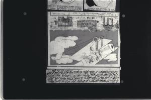ritaglio di giornale incollato su cartone marrone