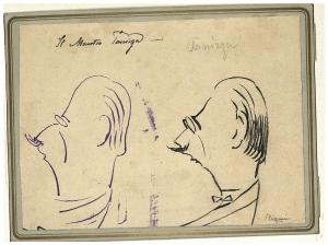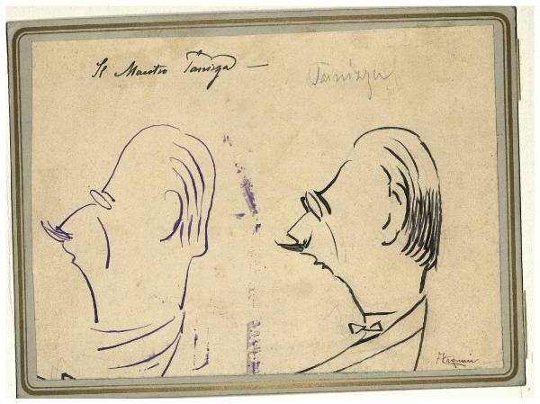 Due studi caricaturali del direttore d'orchestra Maestro alla Scala Tanizza (?) (vedi nota ms. della vedova). Due studi caricaturali del direttore d'orchestra Maestro alla Scala Tanizza (?) (vedi nota ms. della vedova)