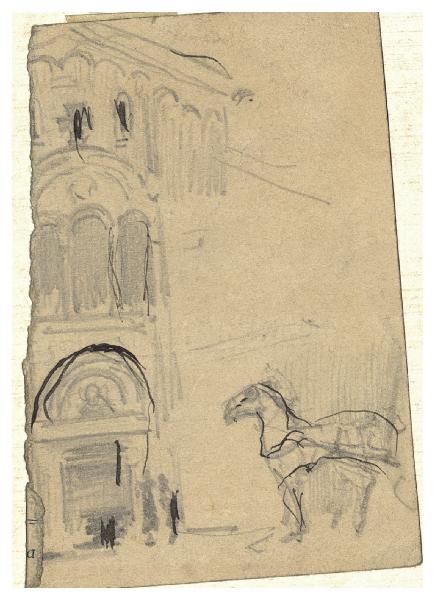 Facciata di chiesa e cavallo. Facciata di chiesa e cavallo