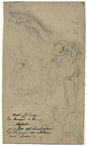 Due figurette femminili, studio di mano, studio di testa d'agnello. Due figurette femminili, studio di mano, studio di testa d'agnello