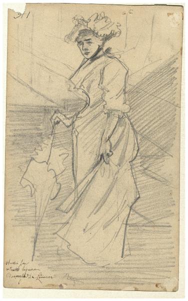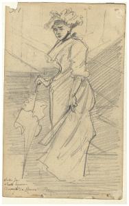 Figura femminile in piedi con ombrello. Figura femminile in piedi con ombrello
