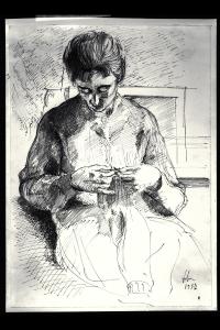 Donna seduta che lavora a maglia
