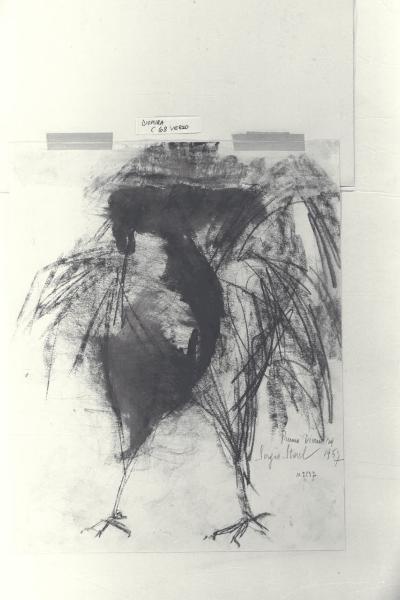 carboncino, inchiostro a pennello su carta bianca