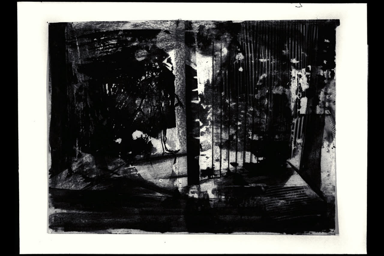 inchiostro di china a pennello, carboncino, smalto su carta bianca