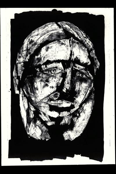 inchiostro di china a penna e pennello, smalto su cartoncino