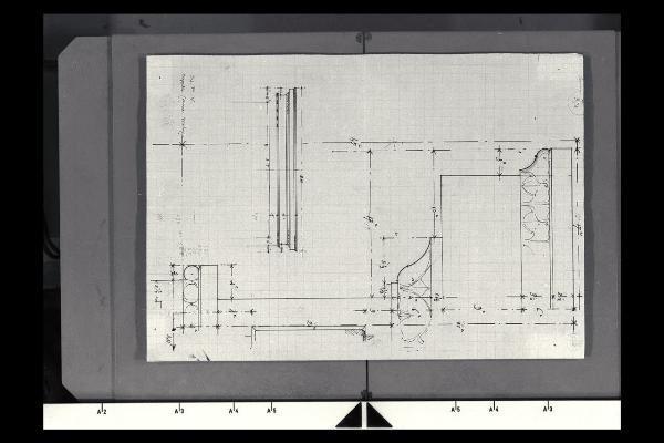 Insieme e dettaglio delle modanature del cappello della cornice Melozzo nella Nuova Pinacoteca Vaticana