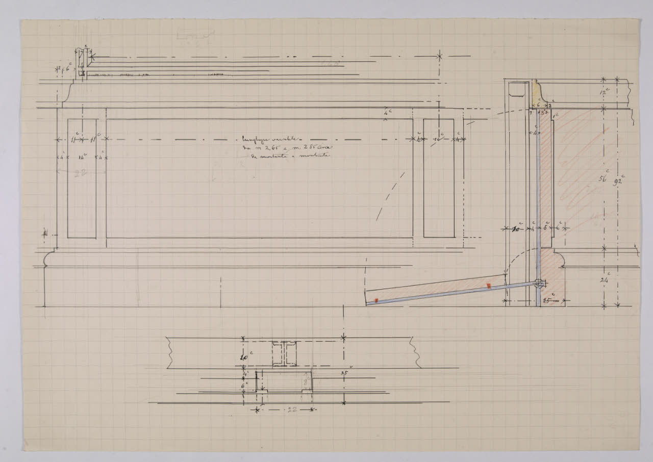 Alzato e sezione delle zoccolature della sala Raffaello nella Nuova Pinacoteca Vaticana