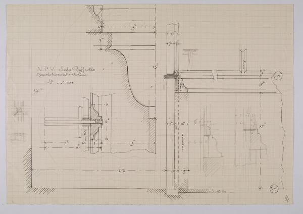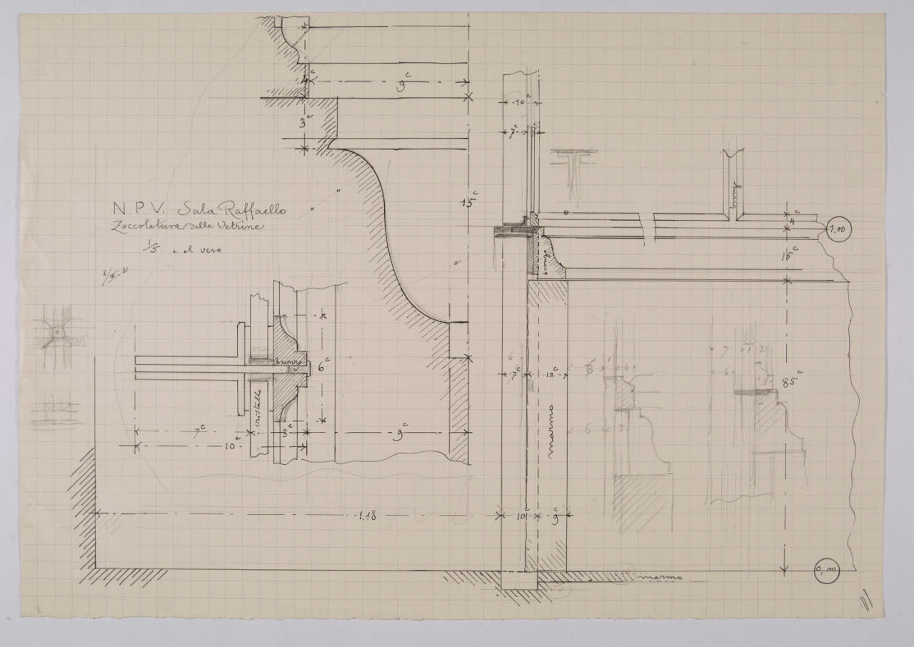 Zoccolatura delle vetrine della sala Raffaello nella Nuova Pinacoteca Vaticana