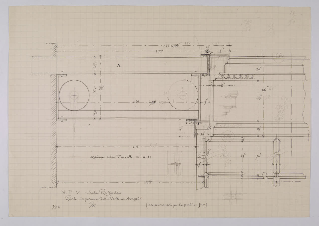 Parte superiore delle vetrine degli arazzi della sala Raffaello nella Nuova Pinacoteca Vaticana