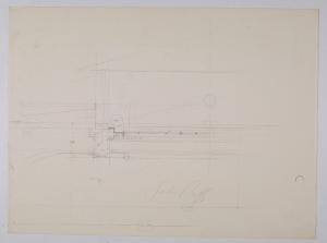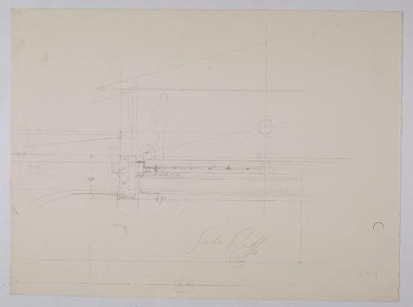 Sezione di una parte della copertura dettagliata sull'appoggio velario e trave della sala Raffaello nella Nuova Pinacoteca Vaticana