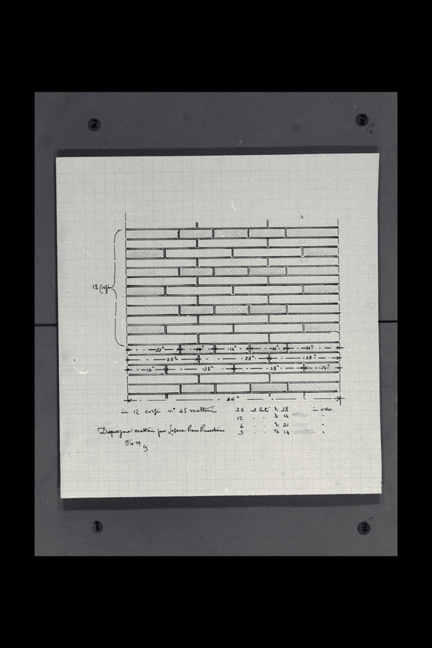 Disposizione dei mattoni per lesene del piano della Pinacoteca nella Nuova Pinacoteca Vaticana