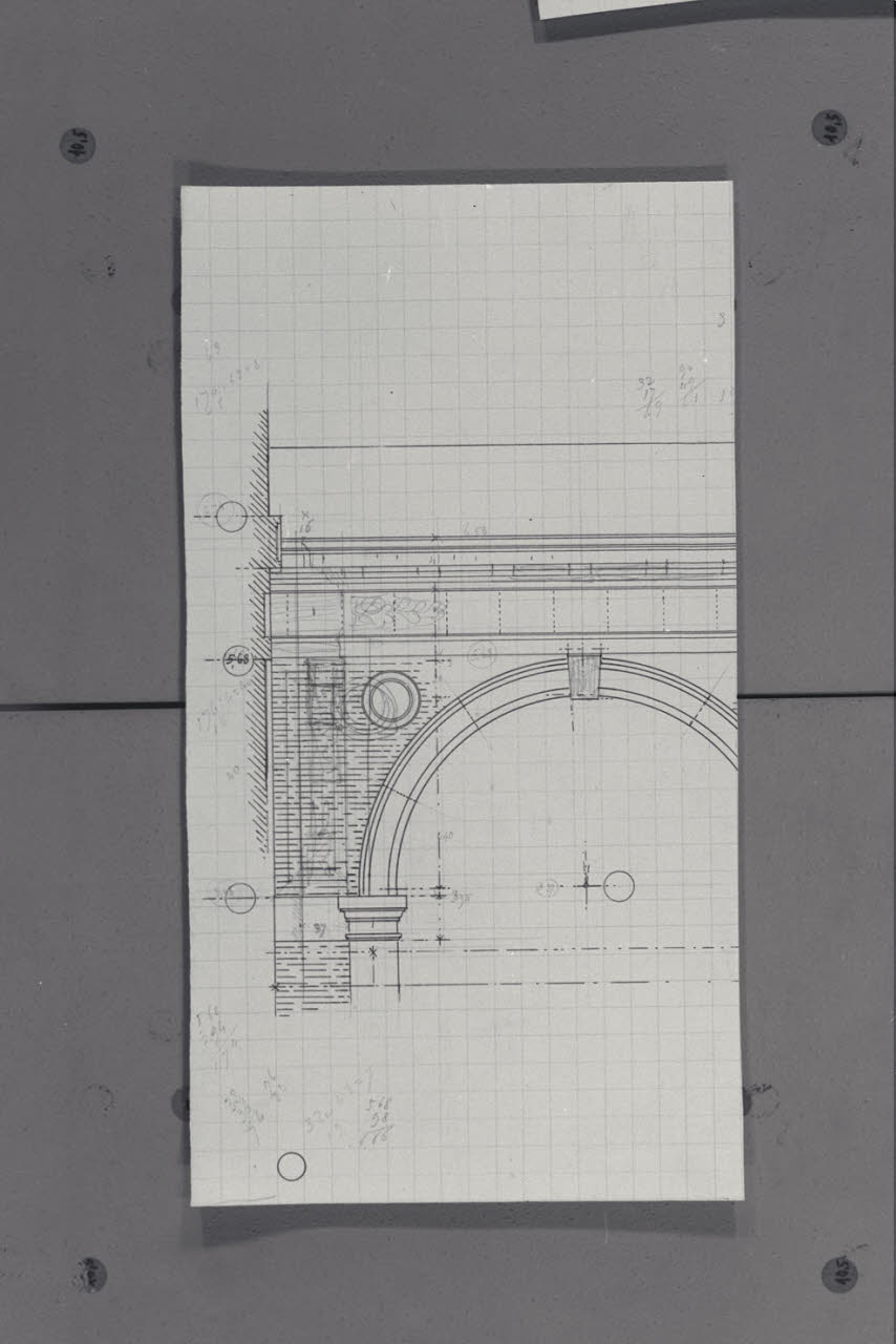 Alzato di un dettaglio del portico di collegamento tra i Musei e la Nuova Pinacoteca Vaticana