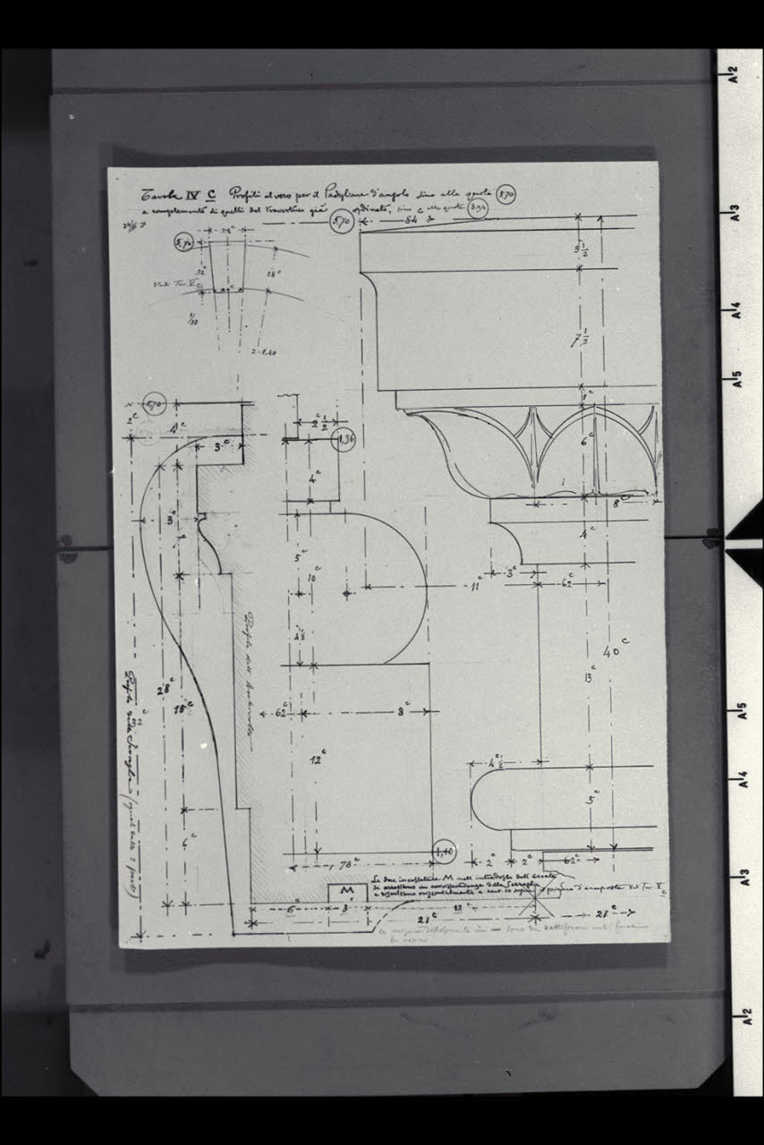 Studi di profili per il padiglione d'angolo, l'archivolto e la serraglia nella Nuova Pinacoteca Vaticana