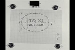 Cartiglio con iscrizione dedicatoria a Pio XI nella Nuova Pinacoteca Vaticana