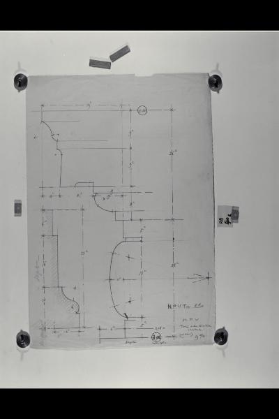 Alzato e sezione dello stipite e dell'architrave della porta della nicchia centrale nella Nuova Pinacoteca Vaticana