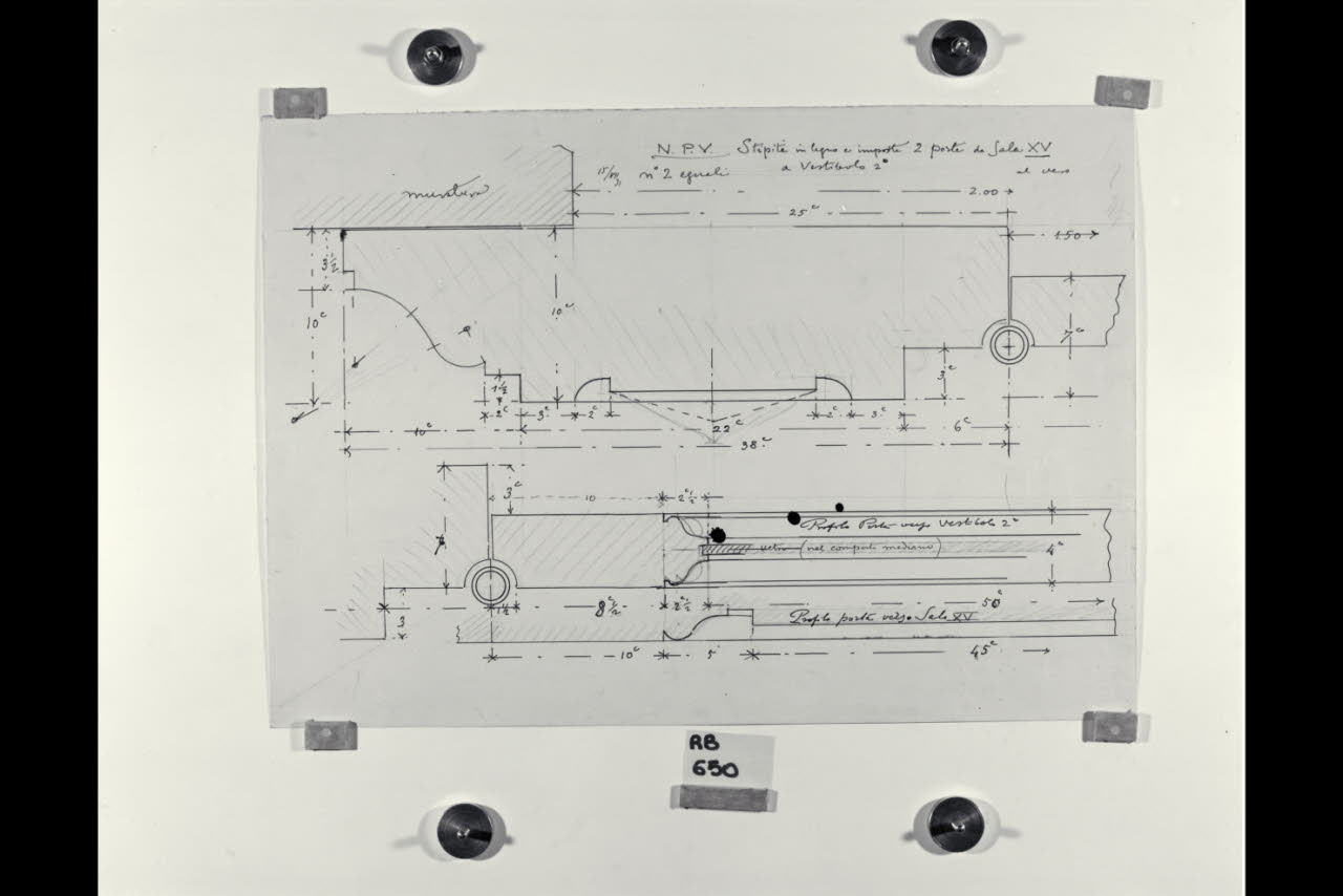 Stipite in legno e imposte di due porte dalla sala XV al secondo vestibolo nella Nuova Pinacoteca Vaticana