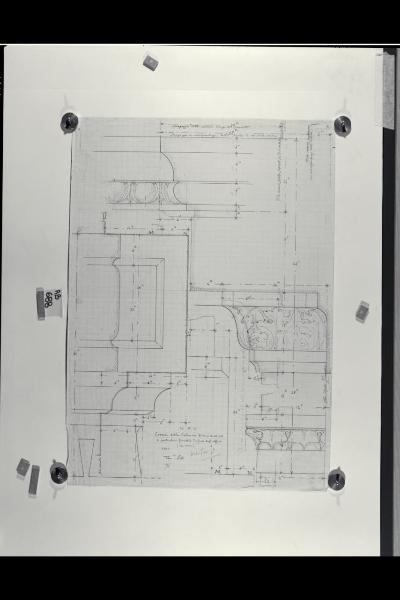 Cornici della sala e particolari della finestra trifora degli uffici nella Nuova Pinacoteca Vaticana