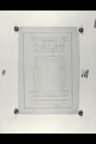 Prospetto di un comparto per le pareti esterne con schema della decorazione nella Nuova Pinacoteca Vaticana