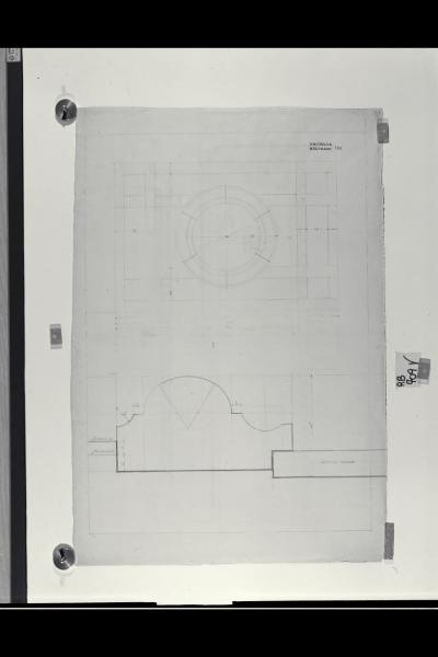 Prospetto e sezione dello schema per i comparti con corone di alloro delle facciate della Nuova Pinacoteca Vaticana