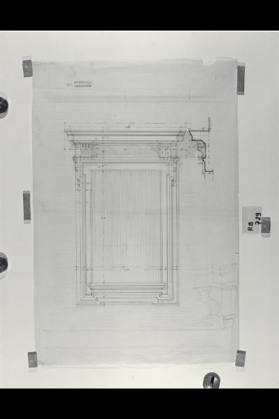 Roma, Sede della Banca Commerciale Italiana: Prospetto e sezione della cornice superiore per una finestra