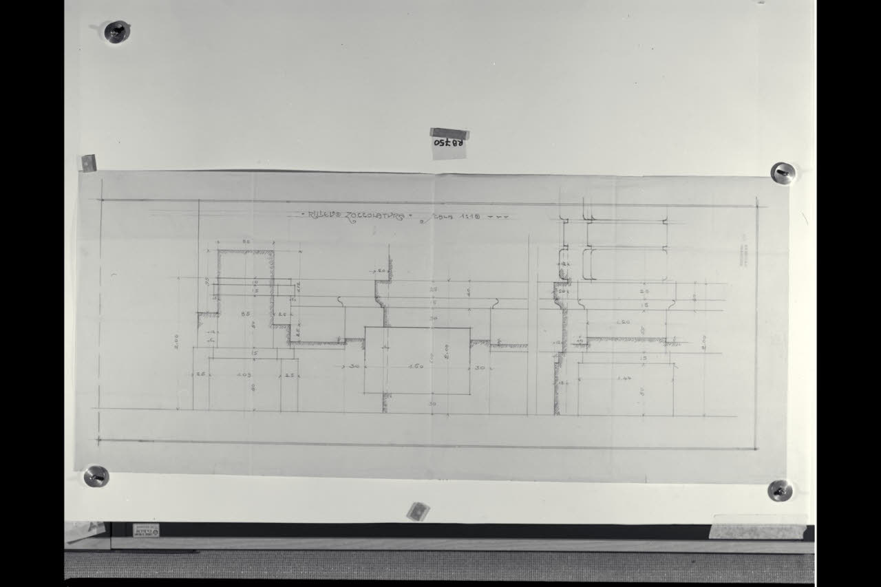 Roma, Sede della Banca Commerciale Italiana: Alzato e sezione del rilievo della zoccolatura del prospetto verso via Nuova