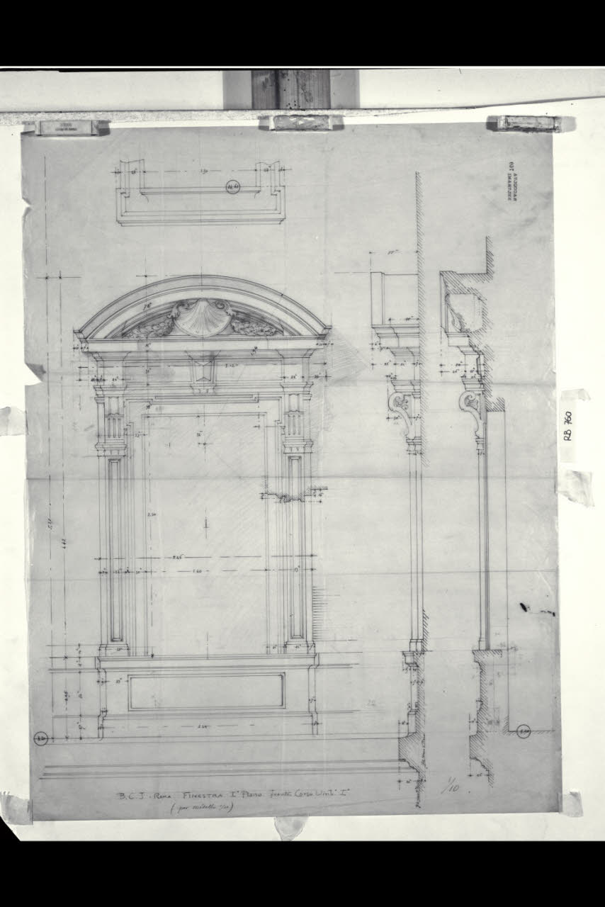 Roma, Sede della Banca Commerciale Italiana: Alzato e sezioni della finestra del primo piano del prospetto verso corso Umberto I