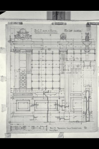 Roma, Sede della Banca Commerciale Italiana: Alzato e sezioni del tramezzo per la sala Forestieri
