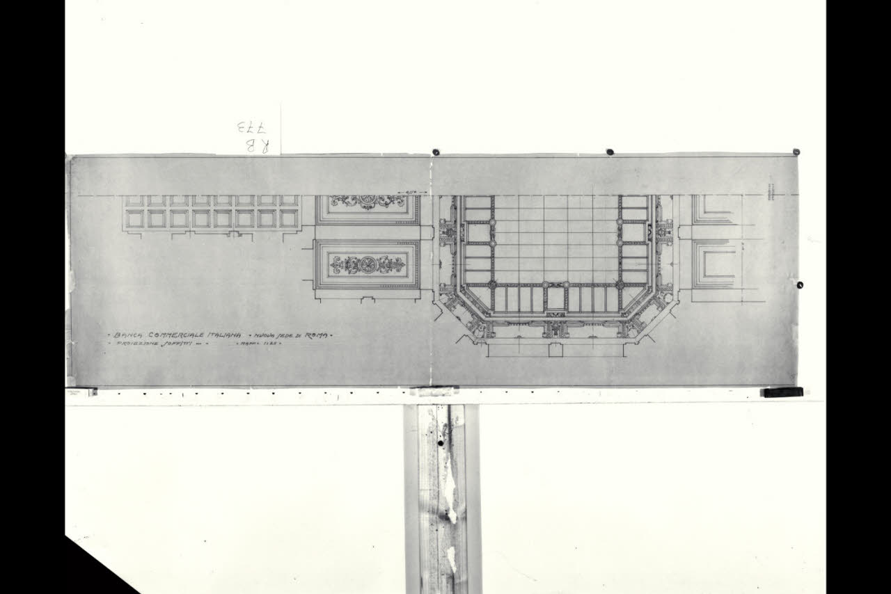 Proiezione dei soffitti della sala per il pubblico nella sede di Roma della Banca Commerciale Italiana