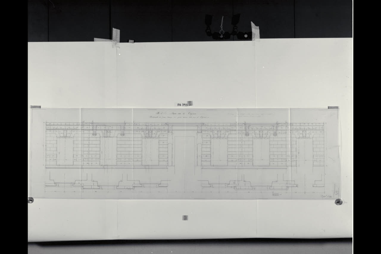 Schema per l'apparecchio del rivestimento del prospetto principale a piano terra nella sede di Cagliari della Banca Commerciale Italiana
