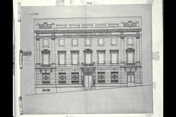 Prospetto principale della sede di Cagliari della Banca Commerciale Italiana. Prospetto principale della sede di Cagliari della Banca Commerciale Italiana