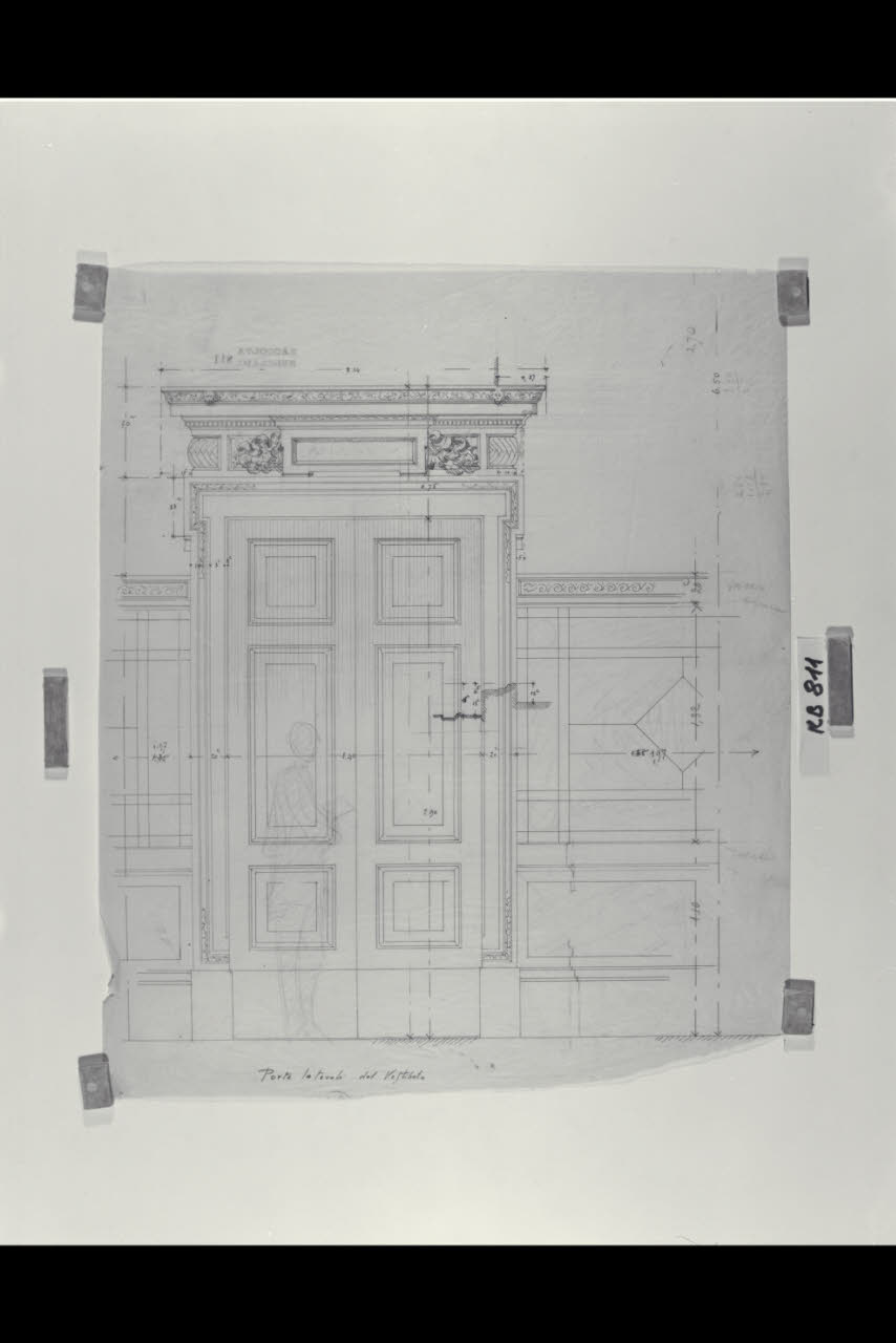 Alzato e sezione del portale laterale nel vestibolo della sede di Milano della Banca Commerciale Italiana in piazza della Scala e via Manzoni. Alzato e sezione del portale laterale nel vestibolo della sede di Milano della Banca Commerciale Italiana in piazza della Scala e via Manzoni
