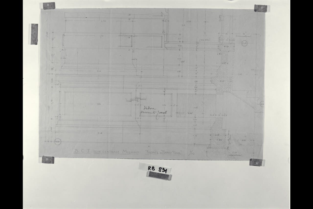 Alzato del piano terra della sede di Milano della Banca Commerciale Italiana in piazza della Scala e via Manzoni. Alzato del piano terra della sede di Milano della Banca Commerciale Italiana in piazza della Scala e via Manzoni