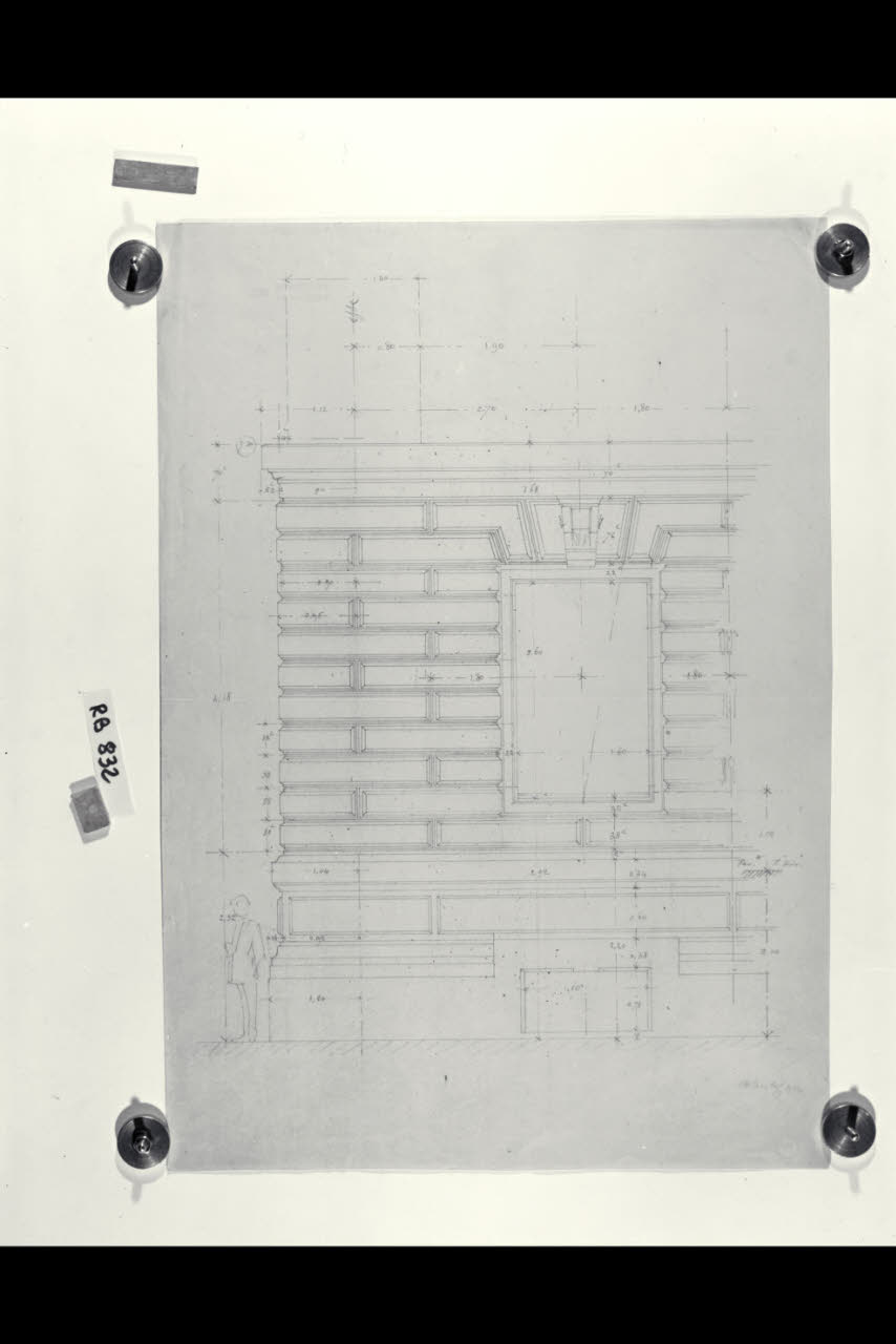 Alzato di un dettaglio del prospetto a piano terra della sede di Milano della Banca Commerciale Italiana in piazza della Scala e via Manzoni. Alzato di un dettaglio del prospetto a piano terra della sede di Milano della Banca Commerciale Italiana in piazza della Scala e via Manzoni