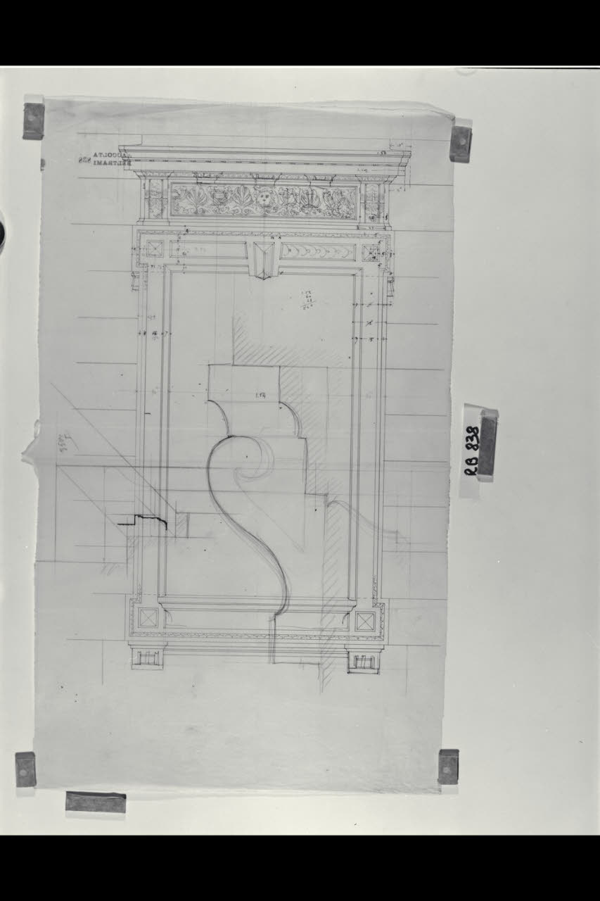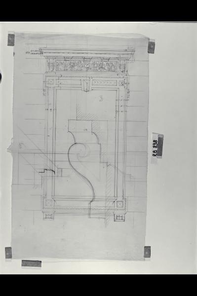 Alzato e sezione della cornice per le finestre del primo piano della sede di Milano della Banca Commerciale Italiana in piazza della Scala e via Manzoni. Alzato e sezione della cornice per le finestre del primo piano della sede di Milano della Banca Commerciale Italiana in piazza della Scala e via Manzoni