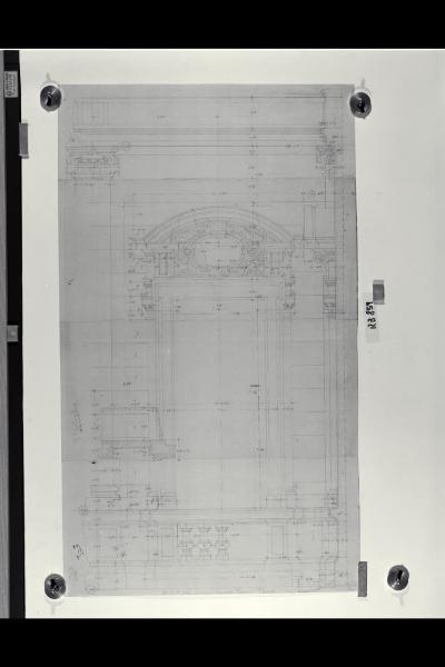Alzato e sezione delle finestre al primo piano nella sede di Milano della Banca Commerciale Italiana in piazza della Scala e via Manzoni. Alzato e sezione delle finestre al primo piano nella sede di Milano della Banca Commerciale Italiana in piazza della Scala e via Manzoni