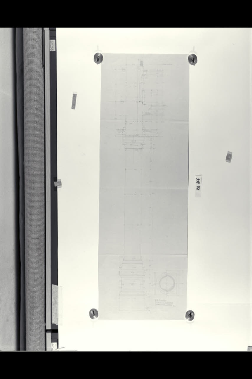 Alzato e sezioni del basamento di una colonna e di una trabeazione nella sede di Milano della Banca Commerciale Italiana in piazza della Scala e via Manzoni. Alzato e sezioni del basamento di una colonna e di una trabeazione nella sede di Milano della Banca Commerciale Italiana in piazza della Scala e via Manzoni