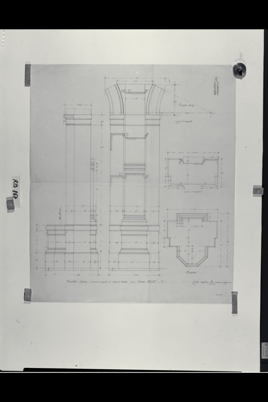 Alzati e sezioni di elementi architettonici della corte coperta nella sede di Milano della Banca Commerciale Italiana in piazza della Scala e via Manzoni. Alzati e sezioni di elementi architettonici della corte coperta nella sede di Milano della Banca Commerciale Italiana in piazza della Scala e via Manzoni