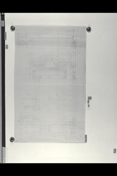 Alzato e sezione di una finestra al primo piano della sede di Milano della Banca Commerciale Italiana in piazza della Scala e via Manzoni. Alzato e sezione di una finestra al primo piano della sede di Milano della Banca Commerciale Italiana in piazza della Scala e via Manzoni