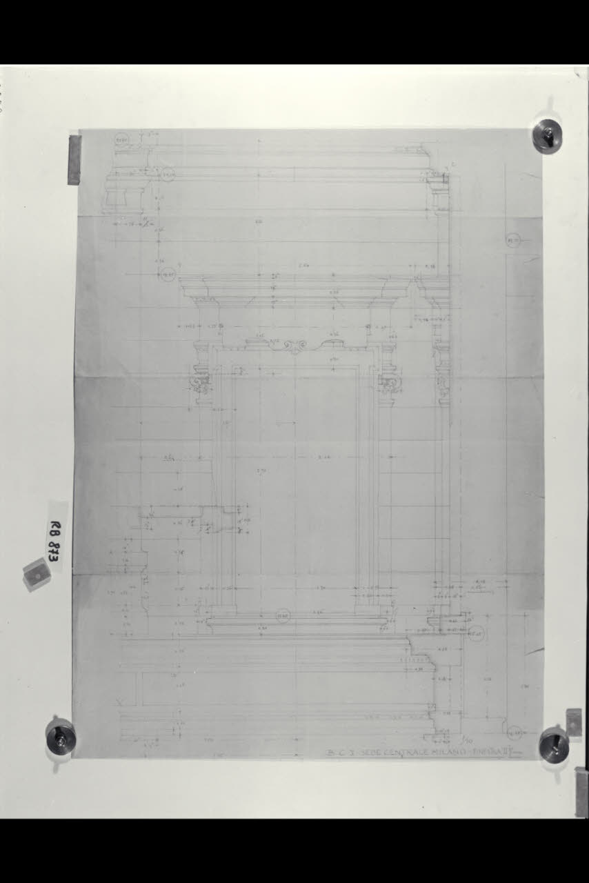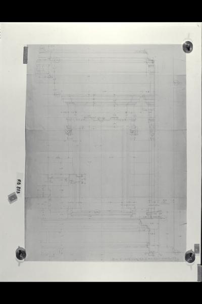 Alzato e sezione di una finestra al secondo piano della sede di Milano della Banca Commerciale Italiana in piazza della Scala e via Manzoni. Alzato e sezione di una finestra al secondo piano della sede di Milano della Banca Commerciale Italiana in piazza della Scala e via Manzoni