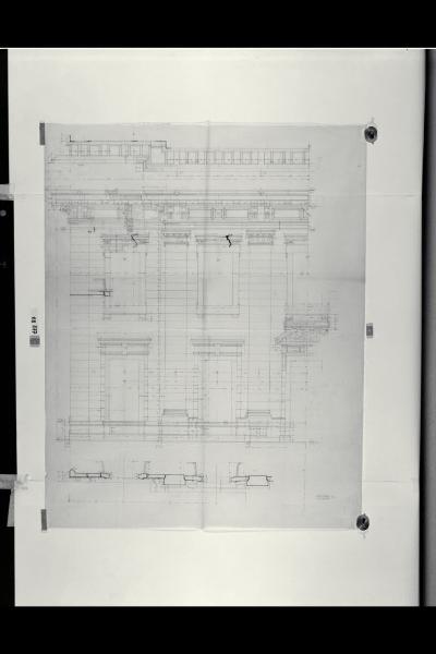 Alzato e sezioni dei piani primo e secondo del corpo centrale della sede di Milano della Banca Commerciale Italiana in piazza della Scala e via Manzoni. Alzato e sezioni dei piani primo e secondo del corpo centrale della sede di Milano della Banca Commerciale Italiana in piazza della Scala e via Manzoni